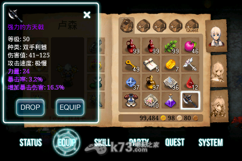 艾诺迪亚3中隧道的BOSS可以刷出一些不错的装备,这里推荐想给50级的时候准备一套不错的武器的玩家来刷,本人刷了50次,就出过这些,同类型的装备出了很多,同类型的装备属性值都有偏差(一般不是很大),我都是取的属性适中的截的图,除了那个锤子我强化到31,其它都是原装货。