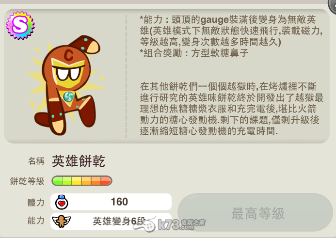 分享一下英雄饼乾的心得,只要拿到碰撞减少70%的道具,本身减少20%体力消耗 + 减少70%撞击机率 = 拚高分的关键 !!!