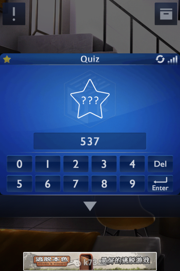获得小星星后大家可以看到小星星的下面有三个数字537,这个就是Quiz的密码,点击桌上的手机,输入537后获得奖励,如图: