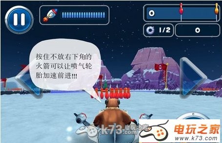 喷漆轮胎能让北极熊滑得更远,玩家在北极熊射出去之后按住屏幕右下角的火箭按钮不放,喷气轮胎可以持续加速,直到氮气使用完为止。