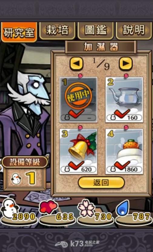 不得不说这是这款游戏最经典、最精华的设置,这款游戏总共有一百多种菇菇,有很多版本的菇菇,必须透过不断的更换设备!升级设备!才能栽培出来。等到全部都搜集完整了,还可以解锁特殊桌布!估计破完游戏大约要1~3个月左右...非常的耐人寻味
