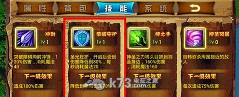 荣耀守护如同一个护盾,能够将伤害降低到80%,每秒消耗20魔法值。但不怎么推荐这个技能哦,因为使用后伤害值依然存在,而且对魔法值消耗也很大,有点得不偿失哦!