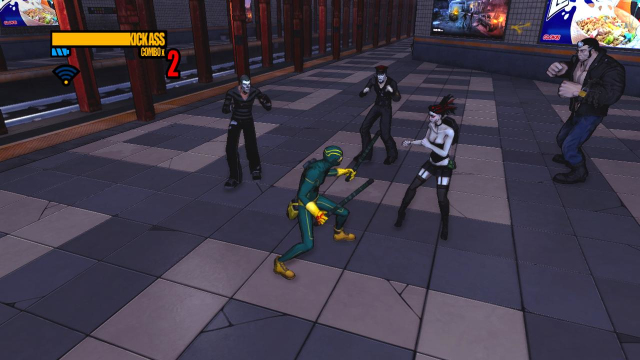 step10.①.黑死身后会带着4名哥德混混,其中刘海男和墨镜女孩都会手持武器,在多番格挡众人的攻击后,用轻攻击偷袭两人,直至会提示可以打掉他们武器为止。