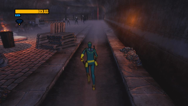 step7.沿着水渠可以走到一嗰较为宽阔隧道内,这儿会出现4名哥德式混混,其中一人是大块头,他的攻击力较高,先解决他,然后再收拾其他人。