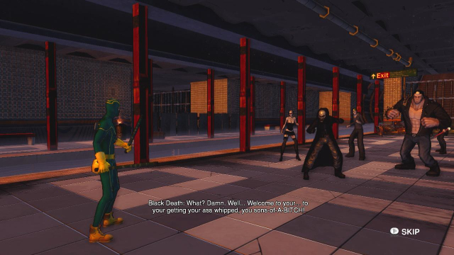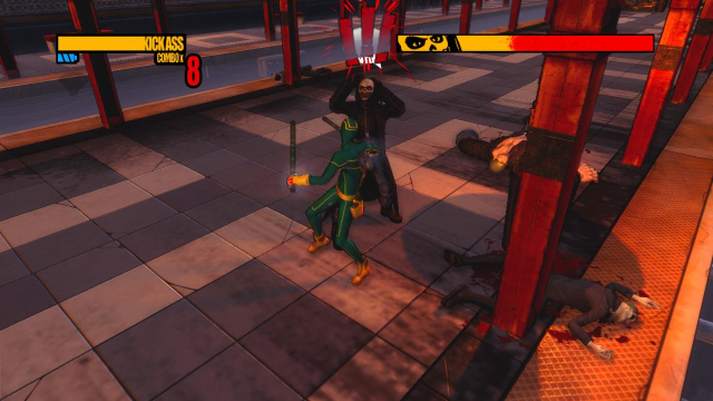 在此月台需要收拾三名敌人,其中一人手持棒球棍,全程以B键的防反来拖延时间,直至右侧的地铁入站后,逃脱开来穿过地铁车厢去到右侧的月台。