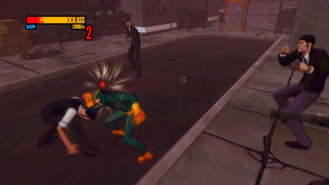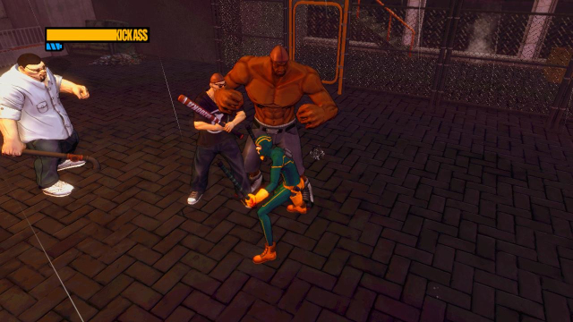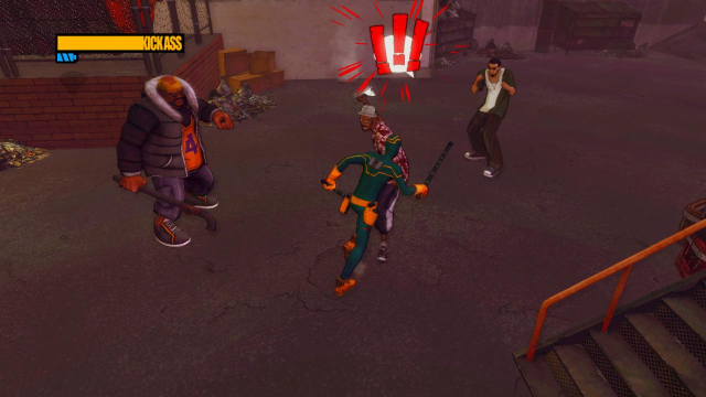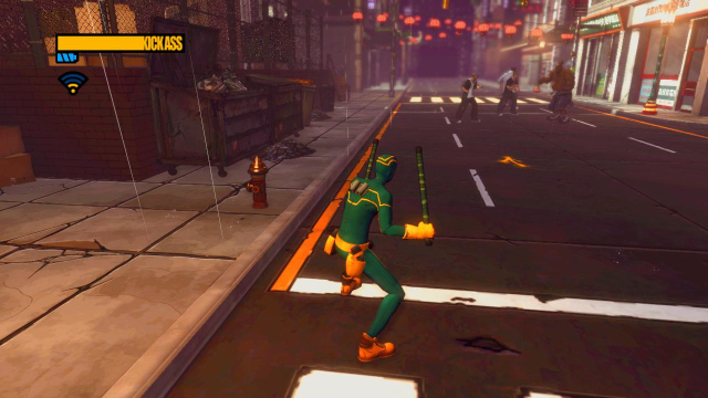 step2.从楼顶另一侧的爬梯落到地面,海扁王发现这里有那些矮囝华莱士的余党在活跃,去到马路上收拾掉这四名徒手的敌人。