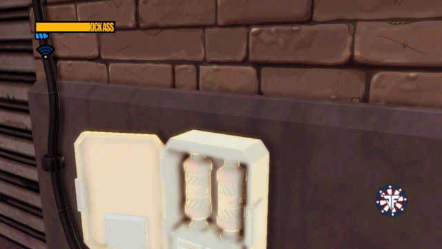 step14.然后爬上垃圾箱旁边的梯子,对露台的电箱使用电击器,那么左侧巷子的闸门便会开启。
