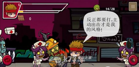 这个关卡主要就是要玩家杀足一定数量的僵尸,玩家不能与时间模式中一样站在中间的地方等待,而是前后移动角色,看到僵尸就出手攻击。