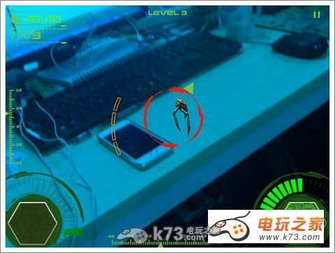《超灵入侵》是一款将虚拟与现实完美结合的射击游戏,在游戏过程中系统会自动开启摄像头,并且以玩家所在的环境为背景,只是偶尔出现的机械蚊子才会让我们觉得这是一款游戏。本作需要玩家利用重力感应来追击敌人,并且在电击敌人的时候也需要一直锁定才能消灭它们。