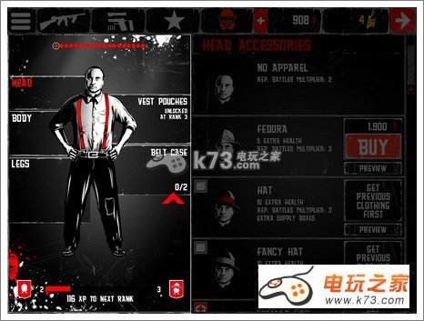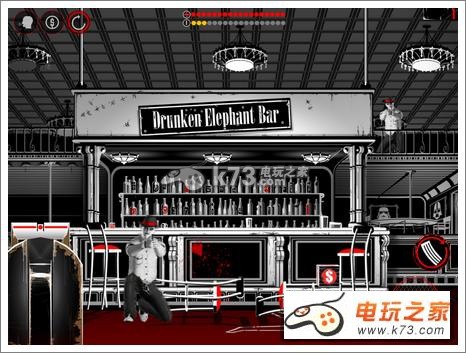 本作最大的特色就是这个漫画式的风格了。复古风的画面把20年代的美国黑帮的造型刻画的淋漓尽致,再加上酒吧等极具风格的西部环境因素所影响,看上去活脱脱的就是一个牛仔大戏。黑白的配色再经典不过,零星的红色点缀让人不禁热血沸腾,完全烘托出了游戏的血腥氛围。