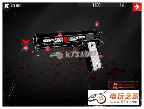 作为一款典型的射击游戏,在操作方面还是非常传统的方式。全屏虚拟遥控杆调节方向,右下是射击和换弹夹的图标。而在射击方面,有点类似于...打地鼠。敌人会从主角前方不同方向挪进屏幕或者从某个障碍物下面突然出现,玩家要控制主角杀掉出现的敌人,不然就会失血过多而死。令人遗憾的是游戏打击感并不太强烈,尤其在固定场景中,少了一点血溅满地的刺激。