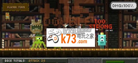 《迷你骰子》是一款像素闯关游戏,游戏虽然是像素画质,但是内容一点都不枯燥,可谓相当丰富。像素战斗类游戏可能不少玩家都接触过,不过本款游戏的创新绝对闻所未闻,将骰子点数与攻击力直接划等号的设计一定会让你耳目一新。游戏的操作很简单,怪物需要一波波来打,每次轮到自己出招,点击左下角的骰子,积累点数,达到自己想要的点数和,就可以点击选择怪物,然后点击右下角的攻击就行了,攻击是不会MISS的,只有当自己掷出1点的时候才会判定为MISS,但是1点的几率还是挺大的哟,不要太贪心积累点数了。下面小编就为大家带来该款游戏的过关技巧,一起来看看吧!