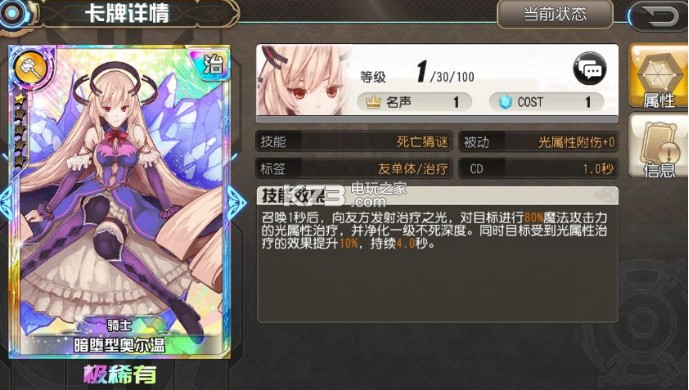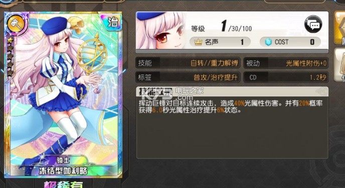 但是之前预约过的玩家应该会拿到一张伽利略,也就是高级普工卡。在攻击倍率上这张卡没有别的增幅,但是她多一个几率提升治疗量的状态,当你是一个单属性奶妈的时候,如果有这么一张普攻卡,对你治疗量的提升还是很有帮助的。