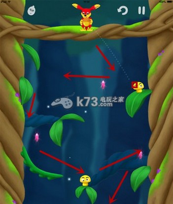 第5关只要把松果按照图上的线路丢下,就可以得到全部的钻石了。
