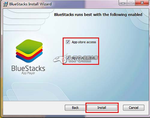 2.根据需要,选择是否从网络上下载新的安卓应用,和应用通报后,单击“Install”。