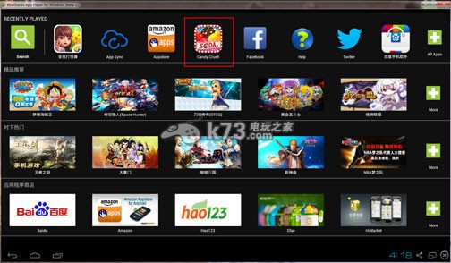 6.然后打开“bluestacks”就可以再窗口看见“糖果粉碎苏打传奇”的游戏图标,点击打开就可以进行游戏了。(如下图所示)。