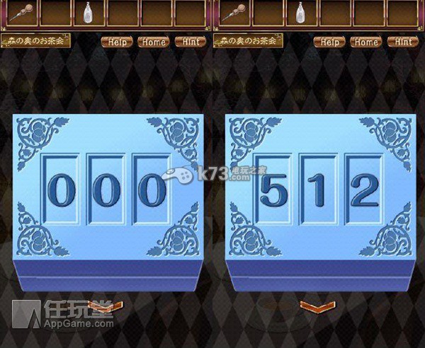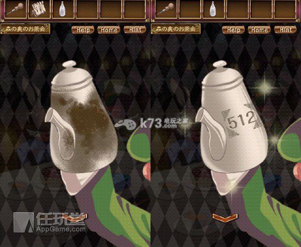 调查右边疯帽子手上的茶壶,对茶壶使用“布”,确认数字“512”。