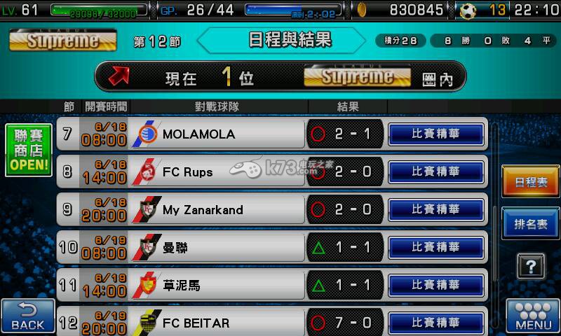 换了阵型后,我在友宜赛裡跟差不多战力的玩家打 通常都能拿2~3分(以前有一分就偷笑了),推荐4-3-3 A 这算是攻守兼具的阵型 当然这是你在每个位置都OK的情况。