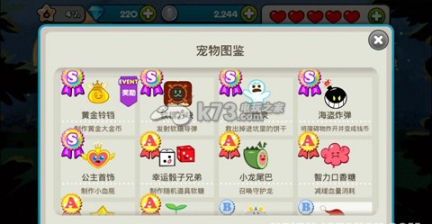 游戏角色也有很多种,不!我错了!不叫角色应该叫饼干,有各种能力各种口味(勇敢、活泼饼干,草莓、咖啡饼干,公主、肌肉饼干… … )再者游戏中饼干有S级,A级、B级、C级几个不同级别的,当然是S最厉害啦,小编大爱S级的天使饼干,有强劲的磁石效果吸收效果,更有天使星星作为组合奖励,要用600个钻石购买,或者达到30级后用89000金币才可以购买得到,想试试各种S级饼干的玩家可要努力勤奋刷钻咯!另外要说的是我喜欢那些圣诞礼物!!(就是宠物嘛)有帽子,袜子,棉花糖,铃铛等等,一样分S、A、B、C级,海盗的炸弹好犀利的,可以炸开障碍物变成金币的呢。游戏有15只姜饼人,20只萌宠(圣诞礼物),多种组合搭配各有特技,可以自己搭配喔,这搭配可以成就你心里的高大上!!升级饼干还有孵化和升级宠物会更加腻害的。游戏内测开启之后也有各种S级等级别的饼干可供试玩,每位玩家每天有两次试玩机会的,玩家们还担心自己不但没辣么多银子刷钻又忍受不了欲欲跃试的骚动了吗?
