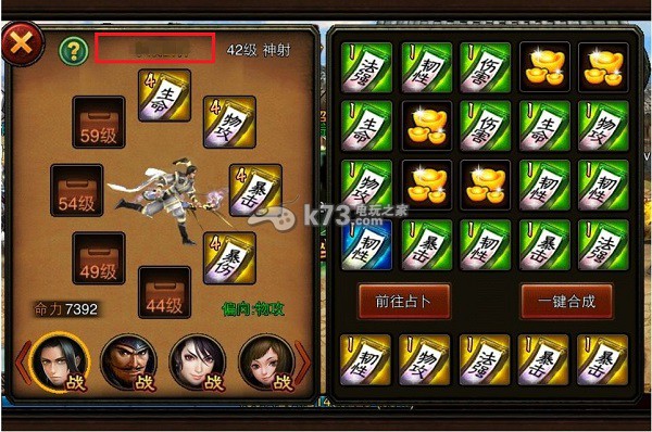 《三国名将》游戏进行到中期,玩家所迷惑的问题无外乎武将选择、阵容摆法、神兵升级、魂符宝石搭配四种。不同的武将佩戴不同的魂符宝石、摆出不同的阵容,可以产生无数种队伍搭配组合,这种组合的自由度正是《三国名将》这款游戏的可玩性所在。玩家应该确定好自己的组合风格,以此为基调选择武将、佩戴魂符宝石。