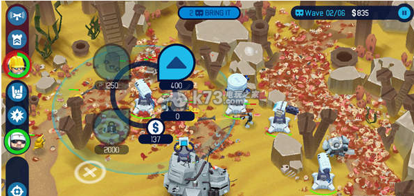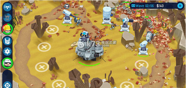 本作的核心玩法和传统塔防游戏并无太大出入,在敌人前进的路径上放置防御建筑、升级建筑、解锁新的建筑,都是用来保护你的基地。在造塔机制上并没有看到什么新意,与传统定点建设方式一个样。炮塔的种类和分支只有机枪、激光、导弹、电塔四种,打击范围和能力各不相同。