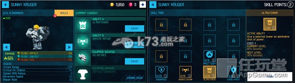 你必须招募一支战斗团队(共有七名人物,包括工程师、炮兵、狙击手等等),他们都分别有自己的技能树,玩家需要通过提高他们的等级获得技能点才能升级技能。合理的升级技能和武器,一些负责修复防卫建筑,一些人则开着坦克或其他爆炸性武器进行攻击。