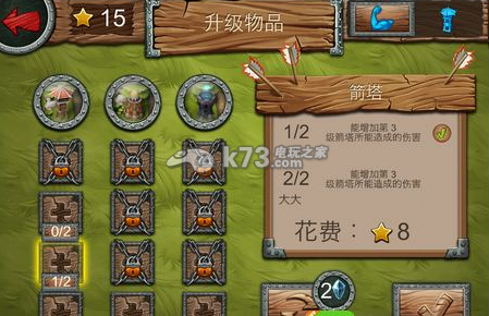 每次通关后我们可以拿获得的星星对防御塔进行属性升级,这里小苹果建议大家均衡加点,不然遇到被针对的怪物只能哭了。