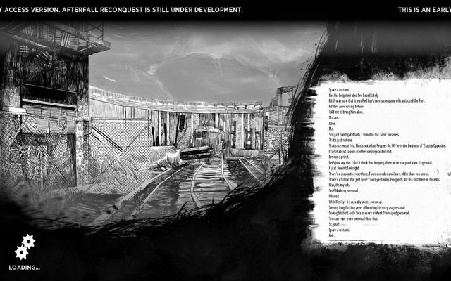 下水道外,是浓雾中的废墟。一条几乎没有水流的肮脏小溪横亘其中。