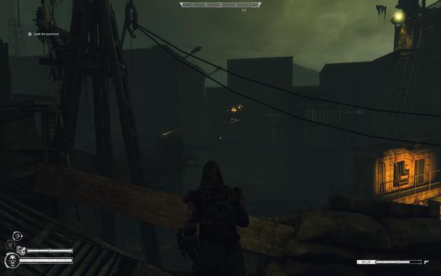 楼上敌人的火力很猛,无法对射。最好进行游击战,击败吊桥上的守卫就能进入营地的核心。在那里,幸存者告诉了你屠杀的惨烈。