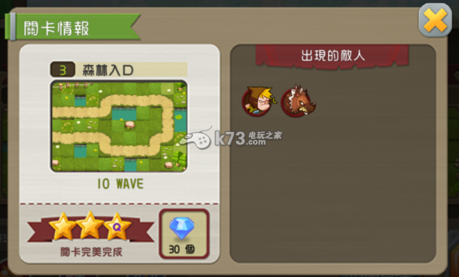 每个关卡只要得到这叁颗星(完美完成),就可以得到钻石30个。