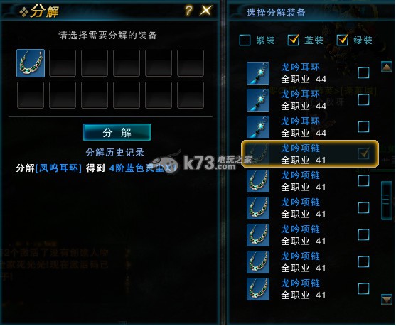 分解所获得的材料与装备的阶段和装备品质挂钩,比如四阶紫色装备分解后获得4阶紫色精华以此类推。(按”B”键打开背包在背包下方点击“分解”按钮进入分解界面)