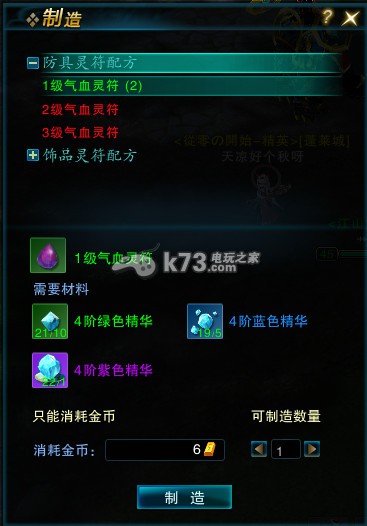 灵符分两种一种为“气血灵符”丶一种“全属性防御符”每一种灵符分1 2 3 三个等级每个等级又分“大”“中”“小”三种。(按“B”键打开背包在背包下方点击“制造”按钮打开制造界面)