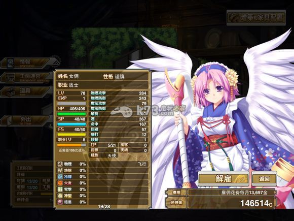 物攻C- 物防C+ 魔攻B+ 魔防A+ 敏捷SS 运气A- 命中A- 回避S 痛打B+ 生命C+ 魔法C+