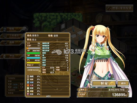 精灵MM各能力评级: 物攻A- 物防C- 魔攻C- 魔防A- 敏捷B 运气C- 命中C- 回避B+ 痛打C- 生命C- 魔法C-