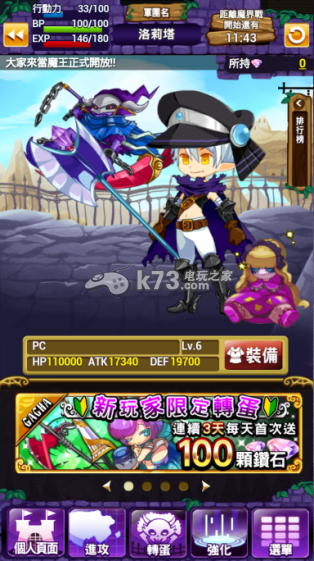 每个关卡分成不同等份,每等份所需的行动力也不一定,但是一定越后面扣越多,这才是游戏嘛!每个等份会出现的状况不一定相同,像是抽宝箱 (钱币、装备、魔兽)、BP恢復 (打小王会耗BP进行攻击)、打小怪 (会要求你连点萤幕进行攻击),待进攻率达100%,该关卡就算完成。