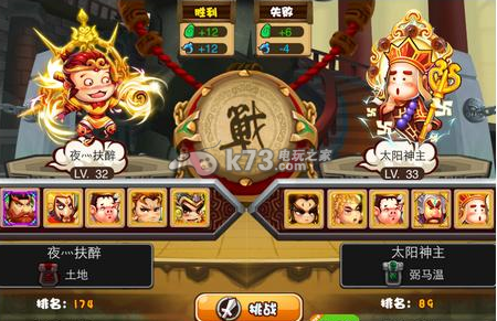 小编推荐搭配:增长天王、孙悟空、猪八戒、天蓬元帅、夺命判官和广目天王,增援伙伴为秦广王。
