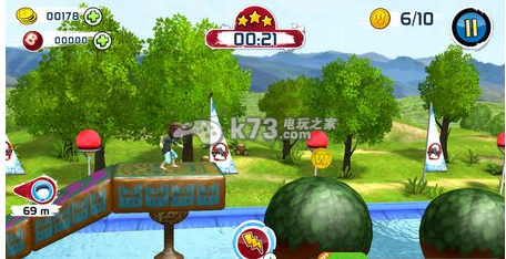 一、弹跳球:游戏中会有四个弹跳球连在一起,人物跳起后落到弹跳球的顶点会弹起很高,左手按住左下角屏幕控制人物在空中移向下一个弹跳球的顶点,注意不落在顶点的话人物很容易落水。