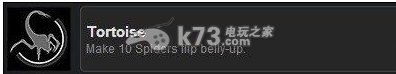 Tortoise:翻转10只蜘蛛。游戏中有一种像蝎子一样的变异蜘蛛,持续用你的手电照射后它就会挣扎着翻转过来了,你也可以趁机上前按V来终结它