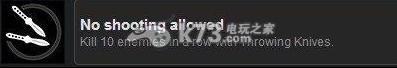 No shooting allowed:使用飞刀连续杀死10个敌人。TAB键选择飞刀后按C释放,注意飞刀有一定的出手时间,击杀移动的敌人要估算提前量。