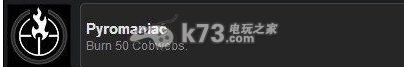 Pyromaniac:烧掉50个蜘蛛网。按M键可以使用打火机,靠近蜘蛛网即可(拿出打火机的同时也可使用轻型武器,但武器无法瞄准且盲射准度降低)