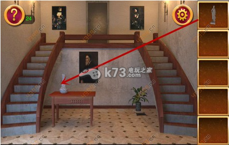 1.本关一开始先点击地上的花盆,将花瓶移动到右边,此时可以得到一个小雕像。