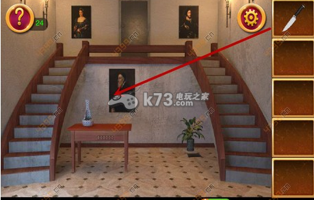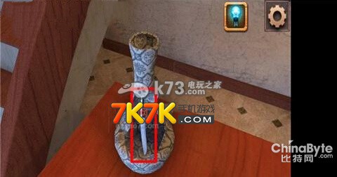 2.拿到雕像后,点击桌子上的花瓶,用雕像将其砸碎,可以得到一把小刀。