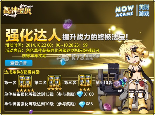 活动内容:角色单件装备强化等级达到相应级别即可获得丰厚奖励!