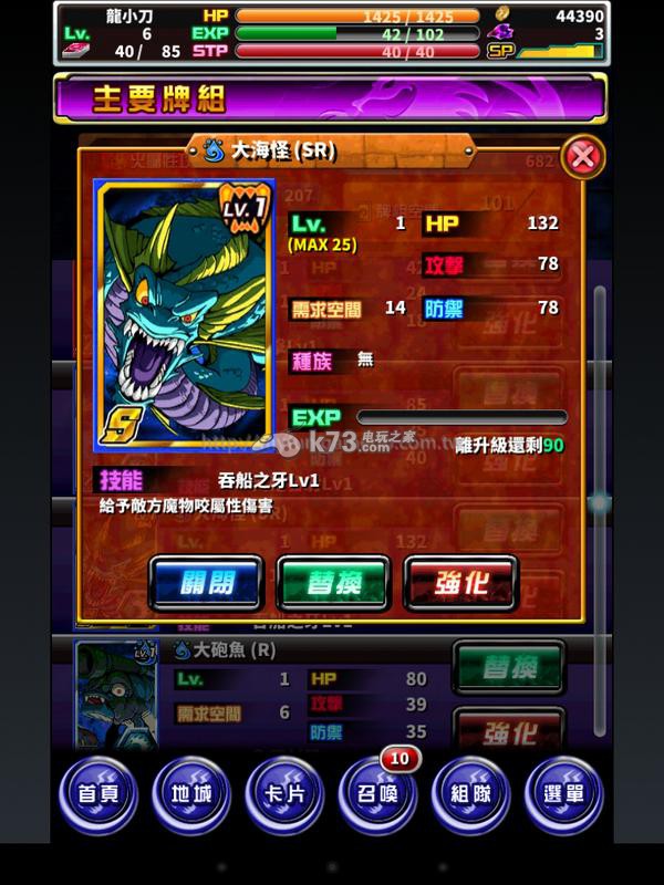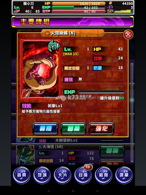 即便玩家可透过龙石来抽卡,但初期在龙石还没集满40个之前,那玩家卡牌要怎么挑选呢?在身边还是一堆N级的卡牌当中,也许玩家们没太多的时间一张一张点开来看,但玩家不妨细心留意卡牌的设计,只要该卡牌附有技能,在卡牌的右上角均会出现相关的技能类型图示,以及技能的等级,在手中没有太多卡牌的情况下,玩家们到是可优先从这几张有技能的卡牌来使用,这样子在战斗的过程中,还有机会可以透过技能攻击来造成怪物的高伤害。