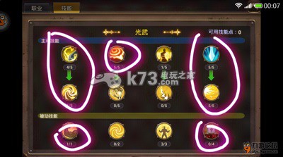 接下来就要介绍下光武的技能加点了。由于是测试阶段嘛,光武的防御类技能作用不是很明显所以加点上有些奇葩,希望官方可以早日改进吧。咱们先说被动,光武有 4个主被动和4个进阶被动咱们要说的是主被动。
