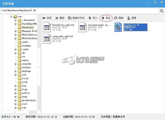 重点就是备份,当你进行到第4步时在这个界面,红圈画出的“导出”即备份,选中keychain-2.db然后点导出,之后选择想要备份到的文件夹,别忘了自己放在哪里了导致无法还原。同理还原就是导出旁边的导入,点击后选择你备份到电脑里的keychain-2.db导入即可。