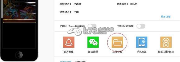 第一步,设备连接电脑,打开ITOOLS出现如下界面,选择文件管理,老版ITOOLS在左侧主界面上下方