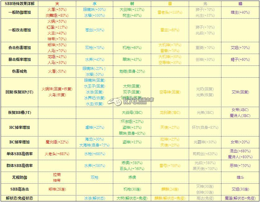 6)回复提升 7)属性攻击附加 8)合击伤害提升 9)HP恢复 10)BB槽恢复 11)BC掉率提升