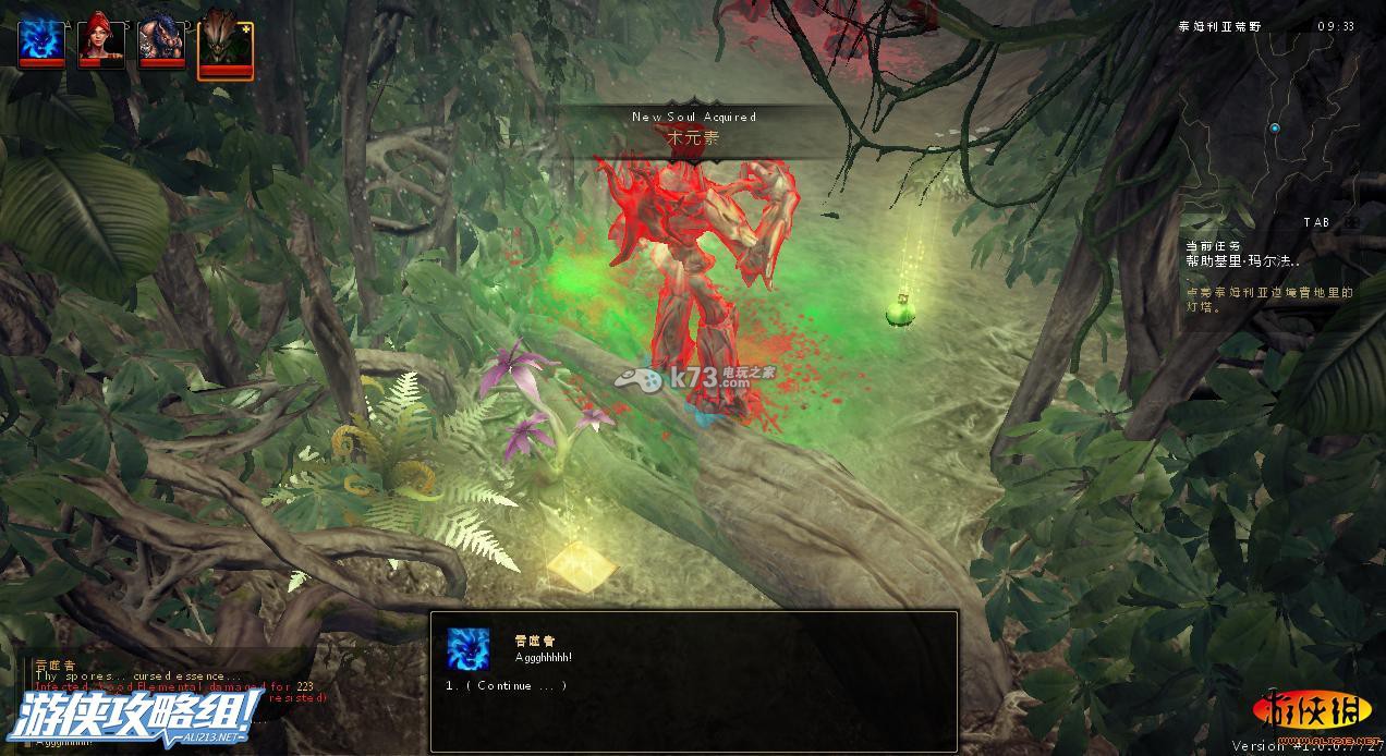 到达下图的这个位置,会自动触发任务治好黑暗抽搐的孢子,并且我们现在变成了树人(如果走到另外的一条路则是变成大黄蜂一只),树人的优点就是强大的生命自我恢复能力,我们先停下做帮助基里·玛尔法的任务,先来结束掉我们的这个任务,因为在这个任务状态下,如果我们的树人死亡(并且不能切换成其他的灵魂),游戏就会结束。