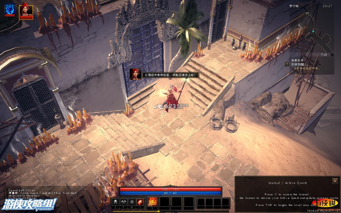 来到我们的奥秘室,但大门紧紧锁住,我们需要把钥匙。这是按J选择任务“加鲁里安帝国的遗产”,进行该任务。